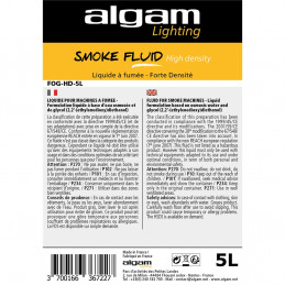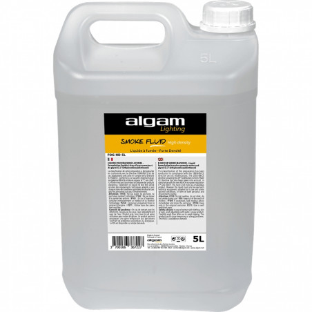 FOG-HD-5L è il liquido per fumo ad alta densità di Algam Lighting che produce un fumo compatto ed omogeneo. Perfetto per spazi ampi con maggiore stabilità per un effetto reale con fumo permanente. Tanica da 5 litri.