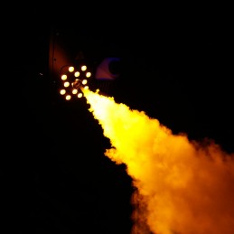 Sono inclusi telecomando con cavo di collegamento da 10 m, tasti illuminati e controlli per regolazione in continuo, timer, manuale, getto di nebbia, luminosità e colore dei LED
