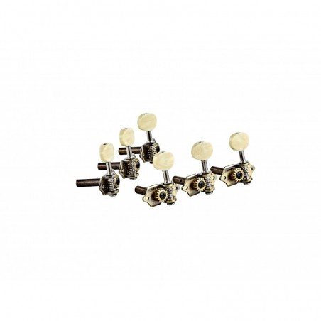 OTMVG-BS Meccanica aperta stile vintage per paletta di tipo classico (con fori a croce). Formato 3 + 3. Finitura ottone anticato con maniglia bianca.