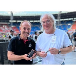 rif. foto : In occasione del tour , tappa a vienna , Ceo Austrian Audio, Martin Seidl , assieme al fonico dei Rolling Stones , Dave Natale.