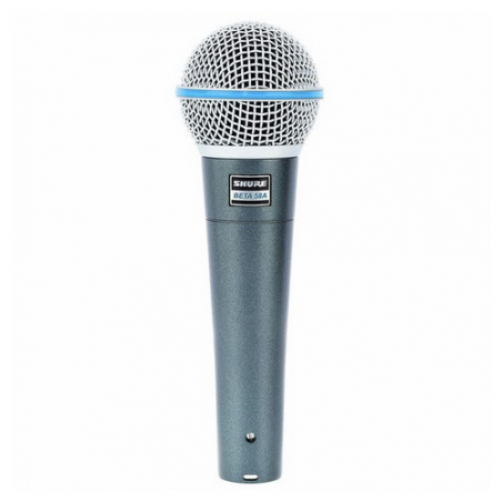 Lo Shure Beta 58A è un microfono dinamico supercardioide per voce ad elevato segnale di uscita progettato per il rinforzo sonoro live professionale e per gli studi di registrazione. Mantiene un modello polare supercardioide su tutta la gamma di frequenza. Questo assicura un elevato guadagno prima del feedback, il massimo isolamento da altre sorgenti sonore, ed una minima colorazione del suono fuori asse. IL Beta 58A ha una risposta in frequenza modellata idela per la ripresa ravvicinata della voce. Le superbe prestazioni di questo microfono non sono influenzate dal maneggiamento grazie alla sua robusta costruzione, all’efficiente supporto antivibrazioni ed alla griglia in acciaio rinforzata.