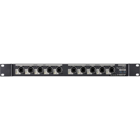 The S-4000-SP is a rugged, dedicated digital audio splitter designed for use with the V-Mixing System and Digital Snakes. The unit provides the highest security of audio transmission with back-up REAC ports and heavy-duty Neutrik Ethercon connectors. Using the S-4000-SP REAC inputs can be split into four fully redundant lossless splits for feeds to monitor consoles, recording systems, broadcast trucks or anywhere an input split is required.