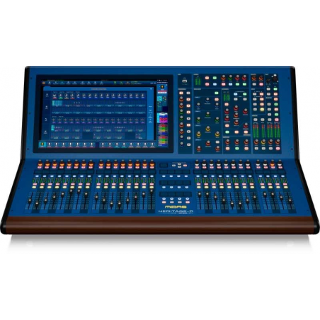 Mixer digitale con 144 ingressi, 120 mix buss flessibili, frequenza di campionamento di 96 kHz - schermo multi-touch da 21'' per installazione fissa (senza flightcase). Inoltre, il banco dispone di 96 ingressi ausiliari, 24 matrici e 4 master. Dispone di 8 preamplificatori microfonici tramite connettore XLR, 8 uscite XLR bilanciate, 3 porte AES 3 di ingresso e uscita. 2 porte Hypermac in fibra ottica o rame per il funzionamento ridondante o individuale (fino a 16 flussi AES50 multiplexati, 384 canali bidirezionali). 4 porte AES50. Ingresso e uscita Wordclock. 4 alloggiamenti per fader (espansione per moduli fader). 4 porte USB. 2 porte HDMI. In/Out/Thru MIDI. Schermo multi-touch Full HD da 21'. 2 alloggiamenti CM1 per schede KT-Dante, MADI, USB o AES50. Processore a 64 bit tramite FPGA e co-processing tramite GPU e processore dedicato. Solo doppio bus con duckers configurabili e AFL/PFL/PFL per ogni ingresso e uscita. Capacità di ospitare fino a 120 processori di dinamica aggiuntivi. driver audio Graviton integrato nella superficie. Compatibile con gli stage box DL231, DL151, DL152, DL153, DL154, DL155 e DL251. 24 VAC e 24 gruppi di popolazione. Intelligenza artificiale (machine learning). Fader di inserimento post. Mixer Shout. 24 slot FX assegnabili, tra cui TC6000 di TC Electronics. EQ cue. gestione dei metadati, tag. Software di controllo offline/online. Cloud per la convalida degli utenti, la memorizzazione di spettacoli, profili, preset, ecc. Marchio MIDAS modello Heritage-D 96-24 o simile.