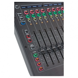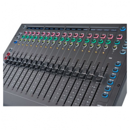 La superficie di controllo include 17 fader motorizzati da 100 mm, 4 layer personalizzabili e 8 SoftKeys assegnabili. Ogni canale è equipaggiato con display dedicato e LED meter cromatico, mentre la nuova interfaccia grafica, ottimizzata per il touchscreen capacitivo da 7", garantisce accesso rapido e logico a tutte le funzioni principali, perfetta anche per fonici abituati all'analogico.