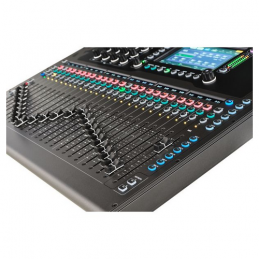 Sul fronte hardware, il mixer offre 25 fader motorizzati da 100 mm distribuiti su 4 layer personalizzabili, 24 ingressi Mic/Line su combo XLR/Jack, 16 uscite XLR e le connessioni necessarie per line, talkback, cuffie e digitale AES3. Il touchscreen capacitivo da 7" e i display con meter LED cromatici per ciascun canale semplificano l'interazione e rendono immediata la gestione del mix, anche per fonici abituati a sistemi analogici.