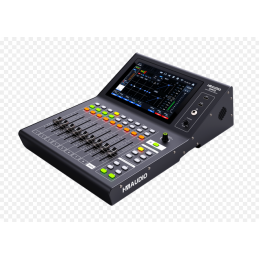 Caratteristiche: Touchscreen capacitivo da 10,1" con risoluzione di 1280x800. Nove fader da 100 mm di corsa; ▼Un totale di 28 ingressi fisici di segnale, tra cui 16 canali di ingresso analogici XLR (incluse 4 interfacce COMBO), 8 canali di ingresso per schede audio USB, 1 set di riproduzione stereo U disk, 1 set di riproduzione stereo Bluetooth; Un totale di 20 canali di uscita del segnale fisico, tra cui 8 canali di uscita analogica XLR, 8 canali di uscita della scheda audio USB, 1 set di uscite cuffie di monitoraggio TRS stereo, 1 set di registrazione su disco U. 16 bus di ingresso mono e 3 bus di ingresso stereo, che supportano configurazioni definite dall'utente delle porte di ingresso fisico ai bus di ingresso. ▼11 bus di missaggio, di cui 6 bus mono, 2 bus effetti, 2 bus di uscita mono a matrice MTRX e 1 gruppo di bus di uscita principale stereo; ▼ I canali di ingresso supportano l'interruttore per l'alimentazione phantom a 48 V, il guadagno analogico, il guadagno digitale, il controllo di fase, il ritardo 0-1000ms, il panning/bilanciamento, il controllo del volume, la personalizzazione dell'etichetta del canale, l'equalizzazione parametrica a 4 bande (selezionabile parametrica/mensola alta/mensola bassa/passaggio basso), il filtro passa-alto, il noise gate, il compressore, ecc. I canali d'ingresso sono dotati di un rilevatore di guadagno per una rapida regolazione del guadagno ottimale. I canali di uscita supportano funzioni come il ritardo 0-1000ms, il panning/bilanciamento, il controllo del volume, la personalizzazione dei tag dei canali, l'equalizzazione parametrica a 4 bande (parametrica/alta selezionabile), i filtri passa-alto/passa-basso, il GEQ a 31 bande, il compressore, ecc. 2 bus effetti offrono 8 effetti (riverbero, eco, chorus, wow, tremolo, distorsione, pitch shift e flanger) per un uso flessibile. La scheda audio 8X8 integrata supporta la registrazione e la riproduzione di audio a 8 tracce. 4 gruppi DCA e 6 gruppi mute per un efficiente controllo dell'instradamento del segnale. Visualizzazione dello spettro in tempo reale con funzionalità RTA. Possibilità di salvare e richiamare banchi di scene ed effetti. Supporta connessioni LAN e modulo USB/WiFi esterno per controllo iOS, Android e PC. Supporto multilingue con lingua autoadattativa sull'APP. Blocco del pannello a doppio livello per evitare errori di funzionamento.