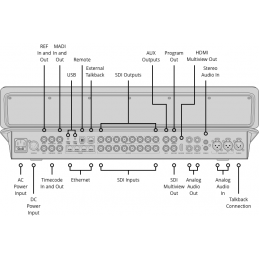 Ingressi audio: 2 x XLR, 1 x BNC audio digitale MADI 32 canali, 2 x RCA, 1 x XLR a 5 pin per talkback
