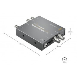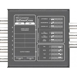 Mini Converter UpDownCross HD è un convertitore di standard che converte qualsiasi formato video SD o HD in un formato SD o HD differente. Offre ingressi e uscite SDI e HDMI, e un ingresso di riferimento per sync interno, algoritmi di conversione firmati Teranex, ritardo audio automatico per una sincronizzazione AV perfetta, e alimentatore per prese internazionali.