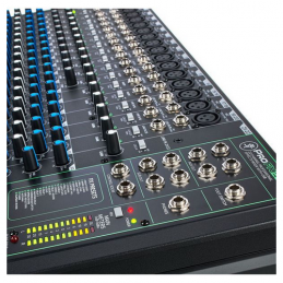 Mixer professionale de 22 canalI . 17 preamp de micrófono Mackie ONYX + 60db GAIN con 2 COMBO Hi-Z , phantom, 3 band, 4 knobs de compresion Low cut , Insert y fx footswitch. pre-fader Solo, AUX/MONITOR OUTPUT, Dual Stereo Subgrup bus output.Uscitta headphones con controllo propio. Interface 2x4USB 24bit 192KHz .. Dimensioni: 206 x 721 x 518mm. Peso: 11.1 Kg