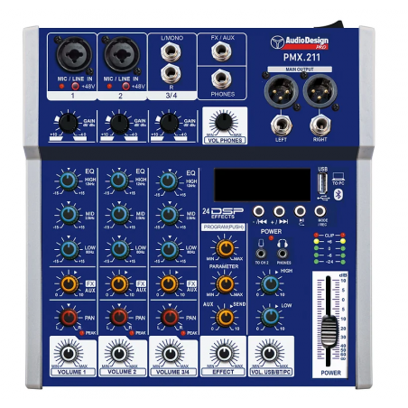AUDIODESIGN PMX.211 MIXER ANALOGICO 2MIC+1ST. - USB - BLUETOOTH - TOSLINK