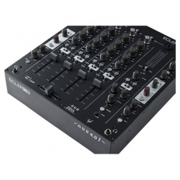 indipendente (per B2B), 2x filtri VCF HP/LP con risonanza variabile, sezione FX Send/Return per canale, insert master, fader Ecler da