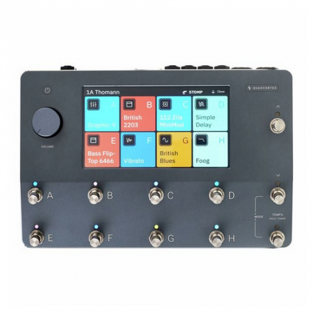 L'elegante layout del Quad Cortex è guidato da un touchscreen a colori da 7" e 11 footswitch. Quad Cortex offre anche ingressi e uscite configurabili, che possono essere salvate indipendentemente per ciascuno dei suoi 2 preset utente, insieme al MIDI e audio tramite USB per suoni registrati plug-and-play da producer.