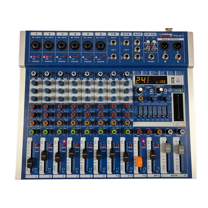 AUDIODESIGN PX2.621 MIXER 6ch.MIC/LINE + 2ch.STEREO USB/BT DSP-24 EFFETTI