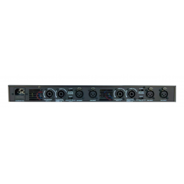 Doppio ritardo anti bump: sui finali e sugli altoparlanti Livelli Canali 1-2-3-4 indipendenti LED Canali 1-2-3-4, Clipping, e On Ventola di raffreddamento a velocità variabile Selettori di massa e del limitatore Connessioni di uscita separate stereo e mono