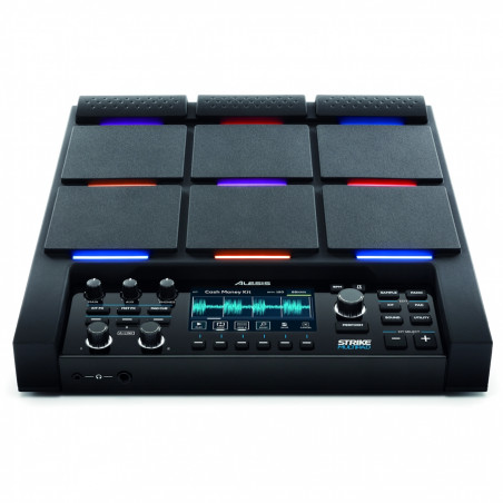 I 9 pad percussivi sensibili alla dinamica (velocity) sono dotati di una retroilluminazione RGB configurabile a piacimento dall’utente a seconda delle esigenze esecutive. Alla base dello Strike MultiPad troviamo uno schermo a colori da 4,3” per la visualizzazione e quindi l’ottimizzazione di tutti i processi di modifica dei kit e dei suoni.
