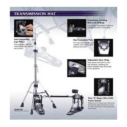 Transmission Hi-hat. Uno stand per Hi-hat che si evolve in un doppio pedale. Tutto questo limitando a due il numero di pedali necessari.
