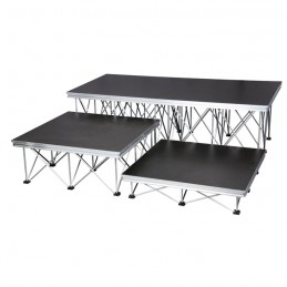 Lo Mammoth Stage è un sistema compatto, robusto e di facile installazione. Componenti leggeri ed estremamente robusti, possono trasportare 500 kg/m². In combinazione con le gambe di ragno a forbice, l'accumulo è facile. Adatto per l'uso temporaneo all'aperto.