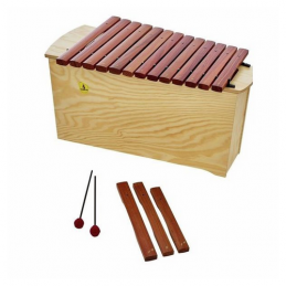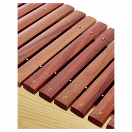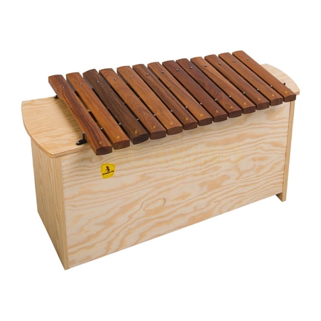Bass Xylophone - Range: c - a1 - Bars made from Pao rosa - With F# and Bb bars - Resonance box made of finest pine wood - Multiple resonance chambers for excellent sound - Compact design with integrated handles - Textile-wrapped bar rests for long durability 16 Bars: 32 x 14 mm - Length: 68 cm
