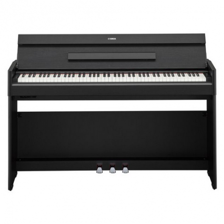Pianoforte digitale Yamaha YDP-S55 B Arius, 88 tasti pesati con azione a martello (martello graduato, GH3) e strato superiore con ebano sintetico e ivory, 10 suoni (incl. un suono di fascia alta campionato dal pianoforte a coda Yamaha CFX), polifonia: 192, effetti (riverbero: 4 tipi, Stereophonic Optimizer, Intelligent Acoustic Control), midi-recording (2 tracce), funzioni: dual, duo mode, metronomo, trasposizione (-6 - +6), accordatura (414,8 - 466,8 kHz), pedali: sustain (half damper), sostenuto, soft, connessioni: USB verso l'host, 2x uscita cuffie (jack stereo da 6,3 mm), sistema di altoparlanti 2 x 20W, alimentatore (PA-300C) e libro di musica "50 capolavori della musica classica" inclusi, dimensioni (LxPxH) : 1353 x 309 x 792 mm (profondità con coperchio aperto 317 mm), peso: 40 kg, colore: nero