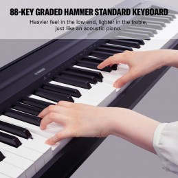 La tastiera pesata, con i suoi tasti più pesanti sui bassi e più leggeri sugli acuti, offre l'autentica sensazione di suonare un vero pianoforte acustico.