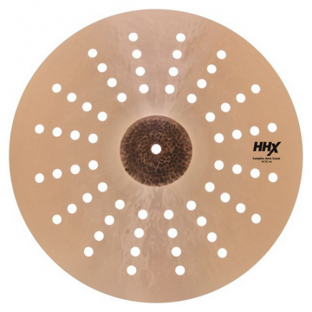 Piatto Crash - Dimensioni: 16" - Materiale: Bronzo B20 - Combinazione di martellatura HH e HHX - Campana martellata - Il design a fori aerodinamici conferisce al Complex Crash, altrimenti pieno e caldo, frequenze leggermente più alte e un carattere leggermente sibilante