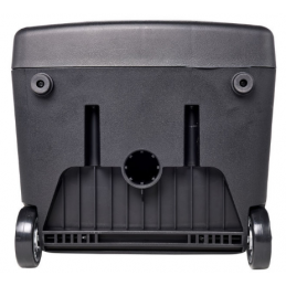 The LD Systems Roadbuddy is easily transportable thanks to built-in castor wheels and a pull-out handle. On the top, there is a handy storage compartment for up to two hand-held transmitter microphones. The plastic housing of this lightweight device has been designed to accommodate a 35 mm tripod mount.