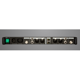 Dispone di ingressi audio XLR e jack da 1/4 pollice, uscite loop out per la mandata in cascata dei segnali in ingresso, porta Ethernet ed uscita per cuffie. Include antenne per montaggio posteriore o anteriore e cavi di rilancio per l’alimentazione e per Ethernet.