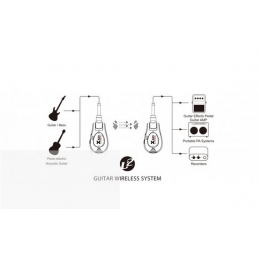 1. Il trasmettitore si collega all’uscita dello strumento, mentre il ricevitore può essere collegato ad un amplificatore, effetti a pedale, interfacce audio, ecc.