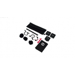 Include hub di ricarica USB a tre porte, cavo di collegamento TRS da 3,5 mm SC2, cavo da USB-C a Lightning SC21, cavo da USB-C a USB-C SC22, 3 filtri antivento e custodia in neoprene per il trasporto
