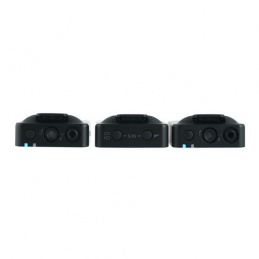 Due moduli trasmettitori (TX) con microfono a condensatore integrato (capsula omnidirezionale) e un modulo ricevitore (RX) con collegamento alle cuffie per il terzo segnale microfonico