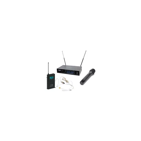 SET 1 MICROFONO A GELATO + 1 MICROFONO AD ARCHETTO WIRELESS UHF A FREQUENZA VARIABILE 100 + 100 CANALI