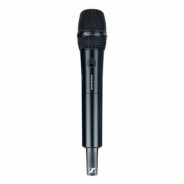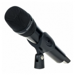 Con microfono lavalier a condensatore ME 2-II (schema polare: omnidirezionale), trasmettitore portatile SKM-S con interruttore mute e capsula dinamica intercambiabile MMD 835 (schema polare: cardioide)