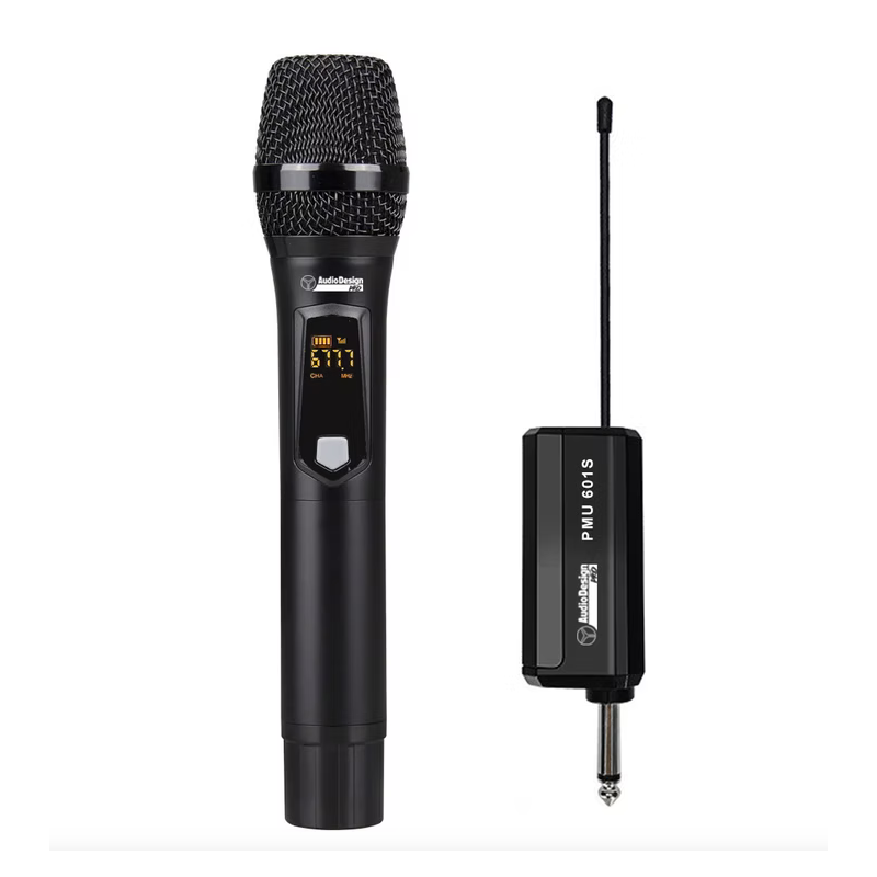 AUDIODESIGN PMU601S SET RADIOMICROFONO A MANO E RICEVITORE A JACK CON STILO AL LITIO 18650