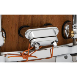 Il guscio viene poi tornito ad uno spessore di 25 mm perfettamente rotondo, laccato a mano e dotato dei nostri Swivel Tube Lugs e dei contro cerchi MasterCast per aggiungere volume e precisione di accordatura.