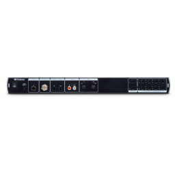 1 porta USB 2.0 2 Ingressi combo XLR / ¼2 mic/instrument 6 Ingressi combo XLR / ¼" mic/linea 2 uscite bilanciate ¼" main (L/R) 6 uscite bilanciate ¼" (aux) 8 channels ADAT su porta ottica in/out (a 44.1 o 48 kHz' 4 canali a 88.2 o 96 kHz) 2 canali (stereo) S/PDIF coassiale 1 usicta stereo ¼" per le cuffie 1 porta BNC word-clock out MIDI In/Out Interfaccia 24-bit / 96 kHz 18X18 USB 2.0 2 ingressi frontali multifunzione Mic/Instrument: Ingresso Combo XLR microfonico e jack bilanciato ¼" Preamplificatore XMAX™ in Classe A e preamplificatore a bassa impedenza per strumenti Controllo individuale del guadagno per ogni canale con range da 0 a +35 dBu Alimentazione Phantom 48V per microfoni a condensatore 6 ingressi frontali multifunzione Mic/Line Ingresso Combo XLR microfonico e jack bilanciato ¼" Preamplificatore XMAX™ in Classe A e preamplificatore a bassa impedenza per strumenti Controllo individuale del guadagno per ogni canale con range da 0 a +35 dBu Controllo del mixer internol (miscela il segnale in ingresso con quello di ritorno dalla DAW per monitoring a latenza zero) Uscita cuffia con controllo del volume Controllo del volume generale Indicatore di clip a LED indipendente per ogni canale Software DAW Studio One™ Artist incluso Software di controllo remoto Virtual StudioLive™ (VSL) Monitor a latenza vicino allo zero con processing dedicato 26 x 8 DSP mixer StudioLive™16.0.2 Fat Channel compressor, limiter, expander, filtro passa alto, EQ semiparametrico per ogni ingresso analogico e per i ritorni dalla DAW 2 effetti stereo da utilizzare in mandata (riverbero e delay) Oltre 50 preset del Fat Channel DSP Requisiti minimi di sistema