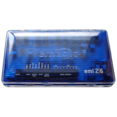 Emagic's EMI 2|6 is an audio interface that can be used with Mac or PC computers fitted with USB ports, making it particularly attractive to those wanting to add audio to their laptops. The small, transparent blue perspex unit comes in a neat carry case and derives its power directly from the USB port, though a DC PSU input is provided for situations where the host USB port or hub can't provide enough current — as turned out to be the case for my beige G3 (into which I have fitted a PCI dual-USB-port card).