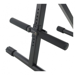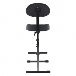 Che tu suoni la chitarra, la tastiera o qualsiasi altro strumento, questo versatile sgabello con schienale integrato ti dà il supporto necessario per ogni uso. Il sedile ergonomico dà un notevole sollievo alla schiena e contrasta l'affaticamento precoce. Anche l'inclinazione del sedile in similpelle può essere regolata in continuo. L'altezza e la profondità dello schienale sono regolabili individualmente. Con una regolazione in altezza da 650 a 930 mm, ognuno può trovare la sua posizione ideale. Il poggiapiedi, anch'esso regolabile in altezza, offre ulteriore sollievo. La robusta struttura tubolare del piede con il tappo terminale regolabile integrato garantisce uno stand sicuro e stabile. Per il trasporto, lo sgabello può essere ripiegato.