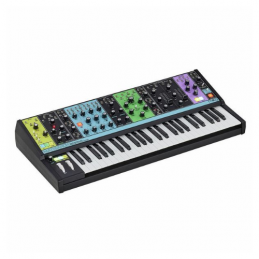 Moog Matriarch is a patchable 4-note paraphonic analog synthesizer with a built-in Sequencer, Arpeggiator, stereo Ladder Filters, and stereo Analog Delay. Create rich evolving chord patterns immediately with “no patching required”, then tap into an abundance of inspiring textures, new sounds, and an endless supply of happy accidents through Matriarch’s 90 modular patch points. Based on the vintage circuitry of classic Moog synthesizer modules, Matriarch is a catalyst for creative ideas and a medium for multidimensional expression.49-Key keyboard with aftertouch via MIDI, KBD VEL OUT