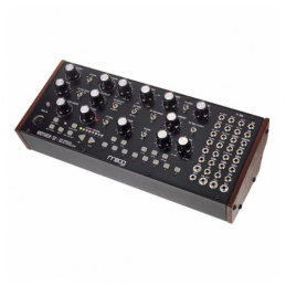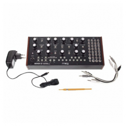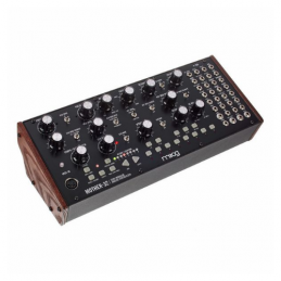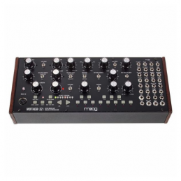 Mother-32 comes secured in a rugged extruded aluminum enclosure with wood sides and features a voltage controlled 32-step sequencer with 64 sequence locations, definitive Moog low pass and high pass Ladder Filter, 2 voltage controlled mixers, a classic Moog oscillator with dual outputs, wide-range LFO with audio-rate modulation capability, MIDI input and MIDI to CV conversion, white noise, a modular patchbay with 32 patch-points for extended synthesis complexity and an assignable CV jack with 16 assignable sources.