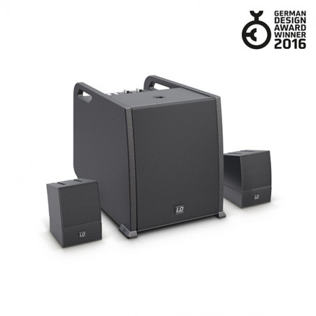 The two satellites are operated via SmartLink® adapters. The elements, only 12 x 12 cm in size, are equipped with LD System's own WaveAhead® technology' one 4" and three 1" drivers provide a coherent and extremely detailed playback with high pressure and dynamics.