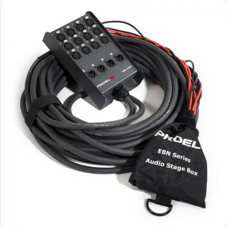 I sistemi audio della serie EBN, sono costruiti con scatola in metallo verniciato a polveri epossidiche e presentano peso e dimensioni ridotte grazie all'utilizzo di circuiti stampati professionali sui quali sono posizionati i connettori XLR NEUTRIK da pannello in nylon di alta qualità, cablati in automatico. Le terminazioni del cavo dove sono posizionate le connessioni volanti, sono protette con guaine in PVC e cablate con connettori PROEL XLRPRO con corpo interamente in metallo. Il cavo multipolare utilizzato per le connessioni fa parte della serie CMF con masse a contatto. Sono disponibili configurazioni da 8 a 40 canali in diverse lunghezze.