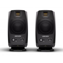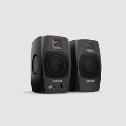 Il D3V è un sistema di monitoraggio da scrivania completamente attivo, progettato per cantautori, produttori e amanti della musica che amano la qualità del suono ADAM Audio ad un prezzo conveniente. Disponibili in bianco o in nero, i monitor attivi sono dotati dell'iconico tweeter a nastro dorato e rispettano il tradizionale stile industriale tedesco di ADAM Audio. Ciascun paio attivo è provvisto di woofer in alluminio da 3,5" e un sistema di magneti in ferrite guidato da amplificatori da 80 W. I woofer sono poi completati da radiatori passivi a doppia faccia da 3,5", che permettono di estendere il D3V fino a 45 Hz. Grazie ai suoi 25 anni di esperienza con la tecnologia dei tweeter a nastro, ADAM Audio ha creato un D-ART (Desktop Accelerated Ribbon Tweeter) compatto da 1,5", così i proprietari di D3V possono godersi la riproduzione ad alta frequenza precisa e impeccabile per cui sono noti i suoi sistemi di monitoraggio. Il D3V ha un ingresso USB-C quindi, quando collegato a un computer, il sistema di monitoraggio si comporta come un dispositivo a uscita digitale e per la riproduzione non è necessaria un'interfaccia audio. La funzionalità Plug&Play si applica anche ai dispositivi mobili, quindi è possibile godersi un audio di alta qualità senza la compressione o conversione normalmente associate con questo tipo di collegamento. Il D3V è anche provvisto di ingressi TRS da ¼" per applicazioni audio analogiche più tradizionali. Il pannello posteriore del diffusore sinistro presenta una gamma di commutatori facili da usare in grado di risolvere i problemi comuni che si riscontrano quando si posizionano i monitor. Il pannello frontale, invece, include una presa per le cuffie e una manopola per il volume che funziona anche come controllo per la selezione dell'ingresso audio, del muto e di altre funzioni. Il D3V include un supporto per monitor separabile inclinato di 15° verso le orecchie dell'utente. Inoltre, sul lato inferiore di entrambi i monitor è presente anche un ingresso filettato standard da 3/8" per il montaggio su un supporto per microfono.