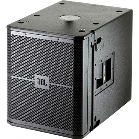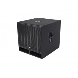 La versione nera del subwoofer volante JBL VRX915S da 15" ad alta potenza può essere posizionata a terra o sospesa al soffitto o a un traliccio adeguatamente robusto in una configurazione volante. Il subwoofer è dotato di un magnete al neodimio 2268H che spinge un woofer brevettato da 15" a pilotaggio differenziale.