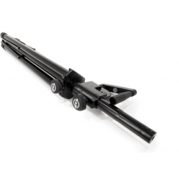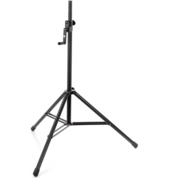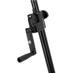 A high quality steel speaker stand with zinc die-cast clamps for professional use. Infinitely variable height adjustment with a hand crank and push button system which prevents an uncontrolled reverse motion. There is an additional locking screw for extra safety. Extension tube diameter 35 mm, suitable for speakers and lighting crossbars with an integrated M10 thread connector.