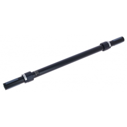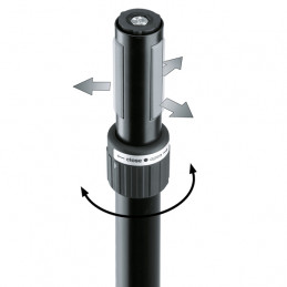 Steel connecting rod for satellite systems. Both ends fitted with a unique patented expanding mandrel system for a tight and firm fit for the base and satellite speaker. Moveable plastic splints separate the speaker from the stand creating a vibration-free connection. Easy to use ring lock.