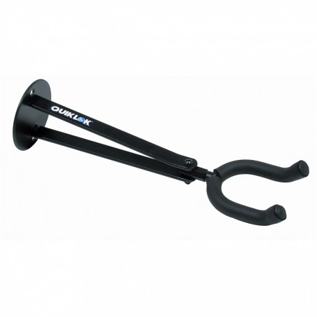 Sostegno a muro per chitarra con forcella curva e supporto extralungo da 24 cm. Progettato per sollevare la chitarra oltre la forcella. La forcella può ruotare di 180° ed essere regolata a destra o sinistra di un angolo qualsiasi.