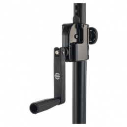 Solid steel tubing to connect satellite systems. Height-adjustment by hand crank. Extra safety features provided by additional push-button and locking screw to avoid uncontrolled reverse motion.