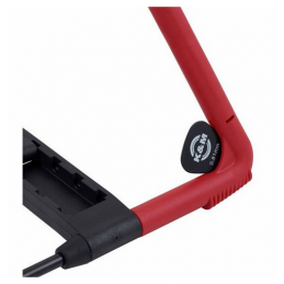 Worldwide proven guitar stand. The instrument is particularly well cared for thanks to the elaborate new rubber structure. With the innovative adjustable cross bar, guitars of different sizes or even other instruments such as a cello or French horn can be placed on the stand. For storage and transport the stand folds flat. In addition, we provide a practical transport lock. An additional feature includes integrated guitar pick holders. Heli 2 is available in black, red, blue and cork.