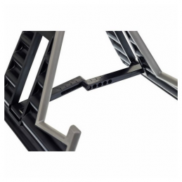Supporto per chitarra facile da usare con una costruzione eccezionalmente leggera per chitarre elettriche. L'uso di materiale plastico ondulato di alta qualità garantisce un supporto molto stabile che è veramente leggero. Lo speciale meccanismo consente un montaggio e una piegatura con un semplice movimento della mano. I bracci di supporto sono rivestiti con un materiale plastico morbido per proteggere la finitura dello strumento. Il supporto può essere regolato per adattarsi a varie dimensioni di chitarra. - Depth of instrument support: 58 mm. Peso: 0,48 kg, H: 290 mm.