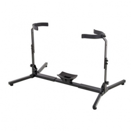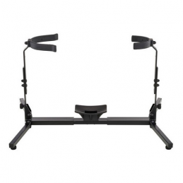 Supporto solido con piedini di livellamento. Facile da montare e piegare. Si piega solo a 450 mm. Bracci di sostegno regolabili in altezza e larghezza, rivestiti in velluto. Supporto per strumenti con fondo grande con materiale antiusura e foro per strumenti con pettine. - Peso: 3.5 kg, H: 380/440 mm, Support Larghezza: 310/530 mm.